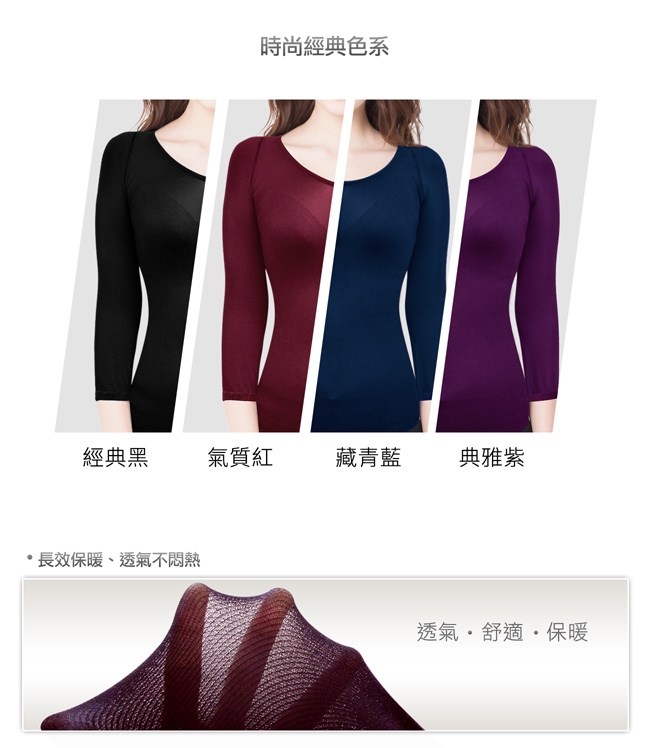 100 台灣製造品質有保障br零著力 高彈力 輕薄隱形 遠紅外線br穿上10分鐘立即升溫9度c以上並可蓄溫 主商品 遠紅外線輕薄七分2WAY暖暖衣 4件 經典黑色 2 氣質紅色 1 藏青藍 售價:1111
