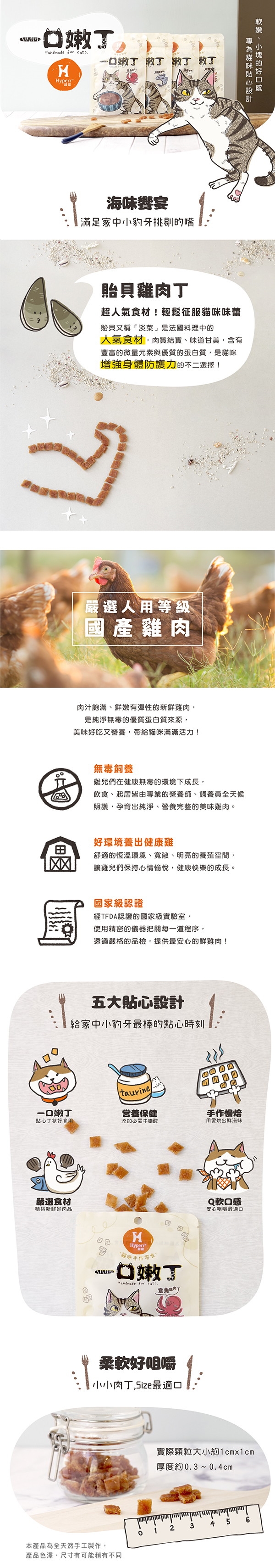 100 手作 小嘴毛孩首選零食 豐富的微量元素與優質的蛋白質 主子增強身體防護力 軟嫩 小塊好口感 為喵貼心設計 品牌 Hyperr超躍種類 鮮食 餐包主成份 海鮮 禽肉成份 詳見商 售價:180